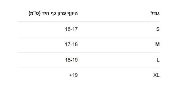 מדריך מידות - Size Guide